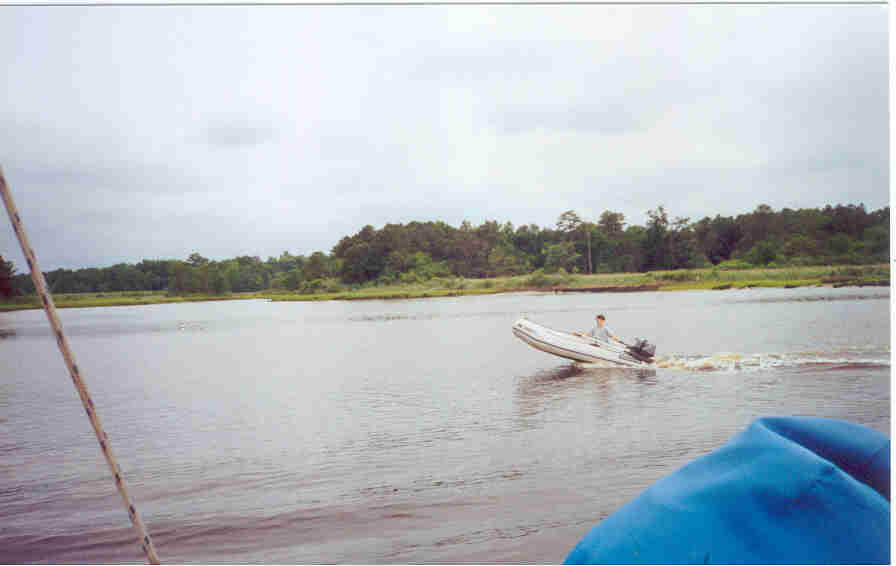 Graham pacing us in the dingy down the ICW.