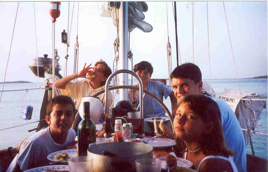 40+ knot winds harassed us again the following day as we went down the other two bad sections of the ICW, the Bay River and the Neuse River. By dinnertime we arrived in Moorehead City, 205 miles from Norfolk. Jess left for a meeting in California and Paul and Diane escorted the kids back to Maryland.