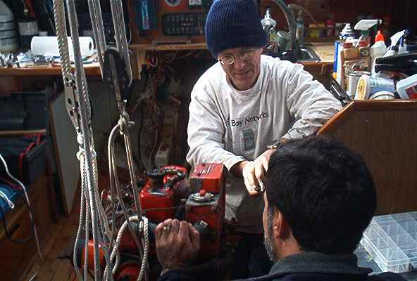 In November, 2001 we attempted to sail to Newport, RI to visit Marybeth, my amazing and utterly compelling girlfriend, but were foiled by engine problems at the mouth of the Delaware Bay. An awful banging in the engine heralded troubles; turns out she (the engine, not Marybeth) was low on oil due to a blown gasket. Filling the sump eliminated the problem but we elected to head back to Baltimore. Prudence is the better part of valor. But clearly the old engine needed some TLC.