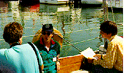 A pair of serious-looking English gentlemen came aboard to being the scrutineering. They checked virtually everything while Scott captured the action on video tape. We had a bit of a disagreement over the interpretation of the flares rule. I had spent some $500 on new top-of-the-line flares to meet race requirements, but was still a few short of the required number. I maintained that the three flares packed in the liferaft should count towards the total. After a bit of discussion the officials agreed that these three would indeed make up the shortage.